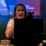 Director Andrea Bleikamp wants to turn it into a "cyber-thriller" with one person and many voices. Claus Stump will furnish the hall in the Orangery at the Cologne Volksgarten. The grandstand for the audience, which is almost fully occupied at the premiere, is set up at the head end. In the foreground in the middle a table with computer and some utilities that NatNike will recommend. On the left and on the right behind her two hanging bars, which are wrapped with coloured cables. In the background is the projection screen, on which Jens Standke throws the image of the monitor, on which also in the course of the evening the rise and merciless decline of the sympathy excursions are displayed. He also provides the video projection of an imaginary starry sky in which star images are sometimes drawn. Sibin Vassilev is responsible for the music and the elementary sound. Elementary in that Bleikamp only lets the blogger appear on stage and the other voices play in from off. That works excellently. No less than nine voices take over the levels of the corporations that are overheard on the "world stage" or tell the story of Jason and Medea. Exactly that's quite demanding, because you have to constantly listen to people you can't see and assign, but genius in the genre-overture. The detachment and anonymity makes you angry, while on stage the personal fate becomes more and more concrete and pathetic.